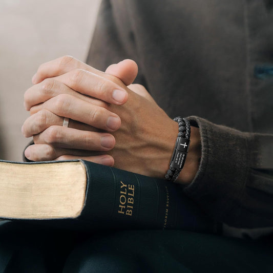 Men'S Cross Bracelet for Men : Inspirational Bible Verse Bracelets Christian Catholic Religious Jewelry Christmas Gifts Ideas for Man, Healing Lava Rock Bead Cross Bracelet Leather Wristband