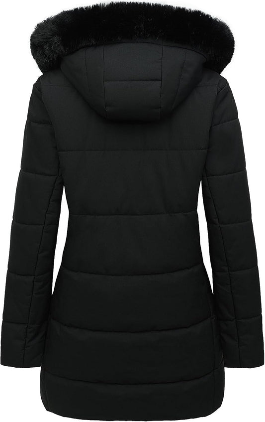 Women'S Winter Puffer Coat Thicken Fleece Lined down Jacket Waterproof Faux Fur Detachable Hooded Parka