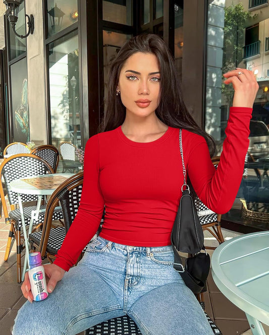 Women Long Sleeve Shirts Rib Knit Slim Fit Tops Basic Tee 2025 Fall Outfits Casual T-Shirt Underscrubs Layer Clothes